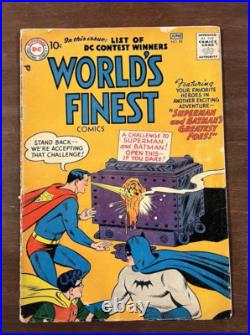 The product is a vintage comic book from 1957 featuring the first appearance of the Joker and Superman team-up. Published by DC Comics as part of the Silver Age era, this key issue from the “World’s Finest” series is a highly sought-after collectible for comic book enthusiasts. Written in English, this comic book showcases iconic characters from the US Comics tradition and is a must-have for fans of the superhero team World’s Finest.