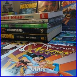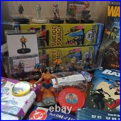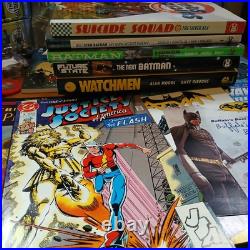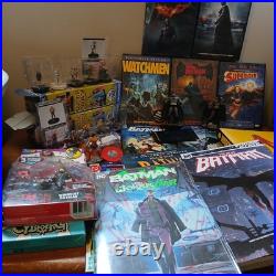 Future state The next Batman. Suicide Squad The Silver Age. All Star Batman My Worst Enemy. 2 Kids’You Choose’ -‘Terrible Toys’ &’Seed Bank Heist. 1 Batman Cookie Cutter NIB. 1 Batman Forever Trading Card Pack unopened. 1 Signed Promo Buffalo Batman Signed. 1 Superman Lenticular Plastic Coin. Justice League 1981 w/ Flash. Action Comics Convergence #2. Phantom Stranger Lenticular. Trinity Of Sin Lenticular. Batman Rebirth #1 – Signed by Buffalo Best Batman. Hardcover Book Watchmen. 2 Heroclix Figures Jokers Wild =-Including Rare Com. 3 Non-Figure 2 Batman – 1 Wonder Woman. 2 Mcdonald’s Teen Titans Cyborg. The Batman Animated 3 Episode. Dark Knight Rises. 1 Blu Ray Dark Knight.